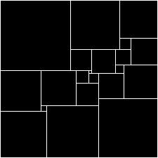 A squared rectangle can be described by its Bouwkamp code. This code is obtained by looking at a list of the horizontal segments found in the squared rectangle, ordered from top to bottom and starting with the top edge, and making, for each segment, a parenthesized list of the side-lengths of the squares immediately below the segment, going from left to right. For example, the squared square above has squares of lengths 50, 35, and 27 along its top edge, and its code runs: